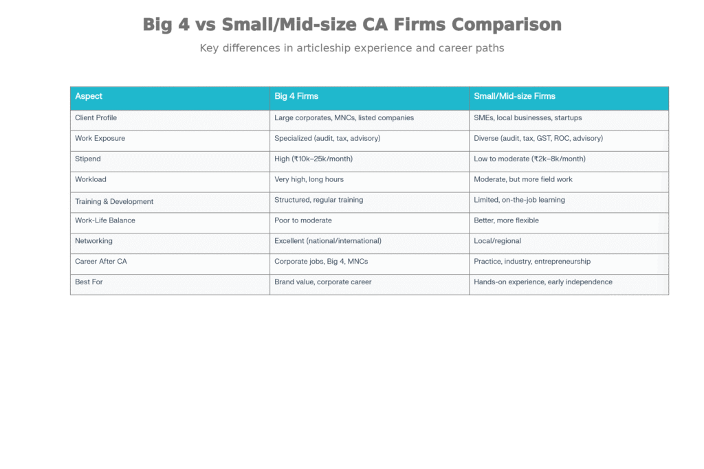 Detailed Comparison: Articleship in Big 4 vs Small Firms